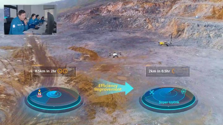 2019年,中国电信股份有限公司芜湖分公司携手华为在海螺集团提供5G“超级上行”网络服务。今年3月,5G超级上行技术在海螺集团实现了全球首次商用部署。以5G﹢无人机矿区爆破预警为例,基于5G“超级上行”网络服务,开云(中国智能赛鹰无人机在矿区进行高空巡查警戒,实时将4K高清视频回传,结合AI保障实时视频清晰度,精准识别人员、矿车、挖掘机等相关元素。
